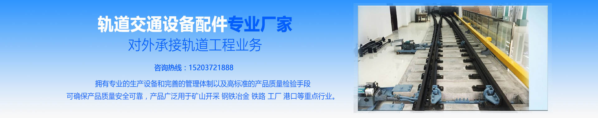 主營:電動(dòng)轉(zhuǎn)轍機(jī)司控道岔輕重軌道岔礦用支護(hù)產(chǎn)品鐵路器材軌道工程